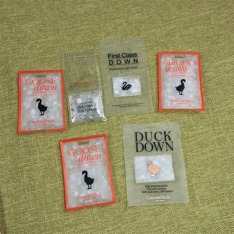 بسته بندی سفارشی کیسه PVC TPU GOOSE DOWN TAG